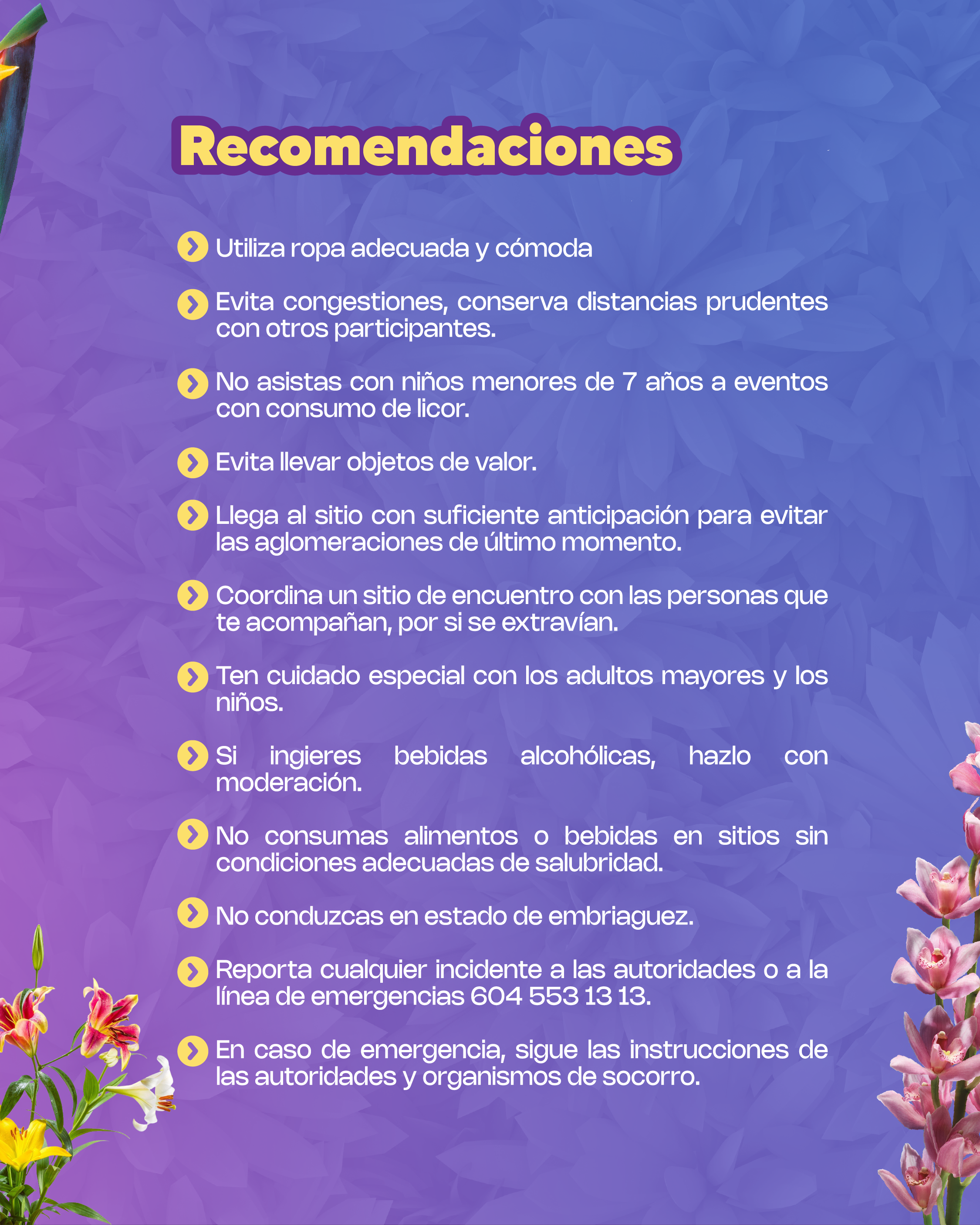 Para garantizar la seguridad y el cuidado de los más de 10 mil visitantes que se esperan por día, la Administración Municipal contará con el servicio de seguridad privada, vigilancia con drones, requisas para el ingreso al parque principal y se mantendrá un Puesto de Mando Unificado permanente, así como varias adecuaciones al mobiliario urbano y el incremento en el apoyo de pie de fuerza tanto del Ejército como de la Policía Nacional.