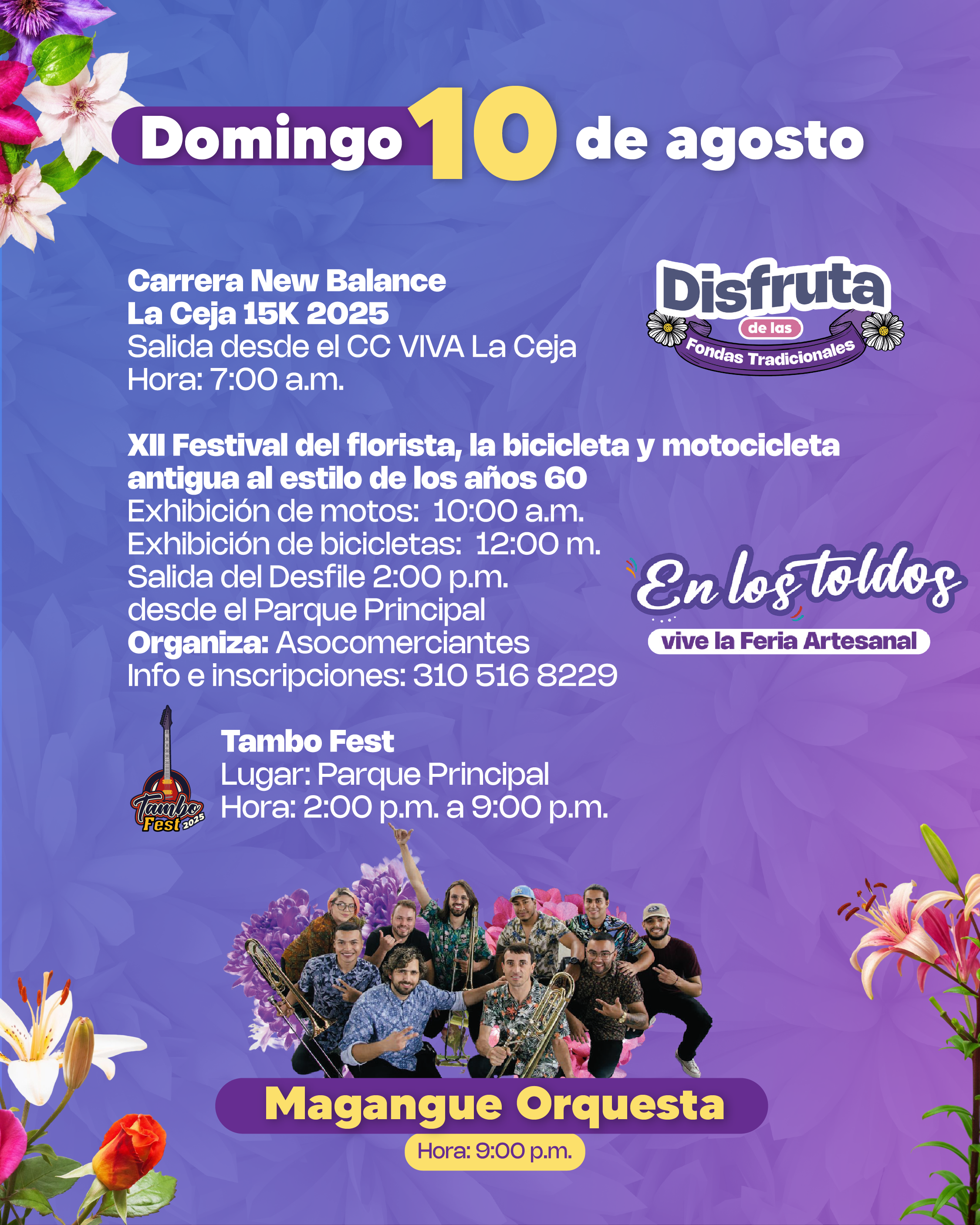 Del 8 al 18 de agosto y luego de 8 años, el parque principal de La Ceja volverá a vibrar con las Fiestas del Toldo, las Bicicletas y las Flores que este año llegan a su 47° versión.