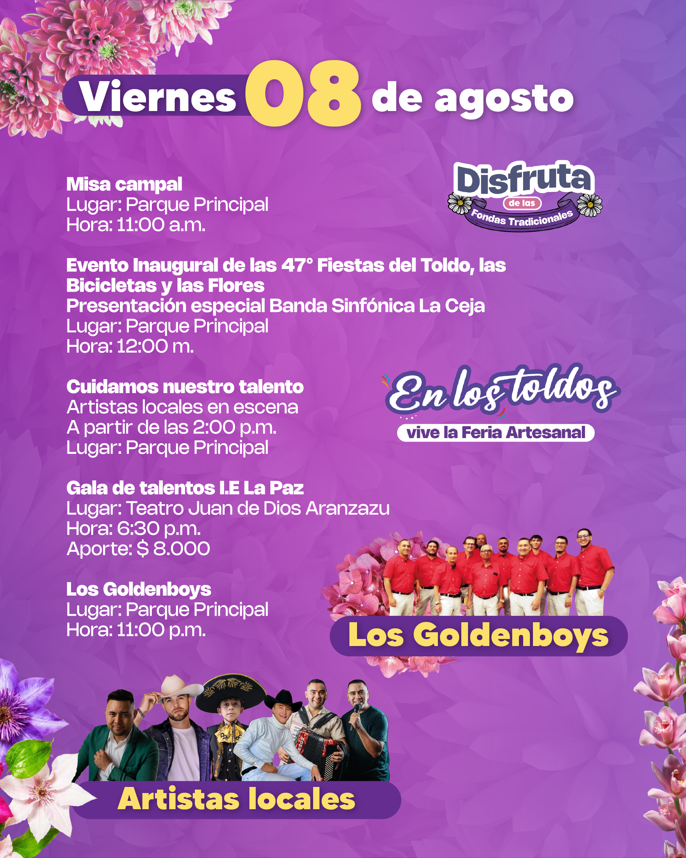 Del 8 al 18 de agosto y luego de 8 años, el parque principal de La Ceja volverá a vibrar con las Fiestas del Toldo, las Bicicletas y las Flores que este año llegan a su 47° versión.